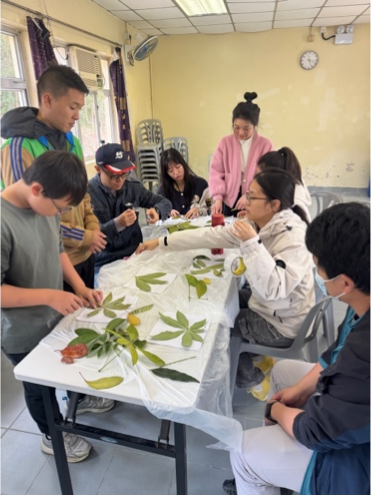 在第二天的早餐过后,同时展开了两个洗涤心灵的工作坊,分别是树叶拓印和树板画创作。树叶拓印的工作坊洋溢着自然的气息和创意的氛围。在导师的指导下,参加者前往树林,挑选掉落在地上的花瓣和树叶,感受它们的纹理与形状。随后,将选好的树叶或花瓣平放在白色的纱布上,用透明胶带将其固定,然后使用鹅卵石或小锤子轻轻敲打,让树叶或花瓣的汁液透过敲击渗透到纱布上,留下独特的印记。最后,大家聚在一起欣赏彼此的作品,交流心得,感受大自然的魅力和艺术的力量。