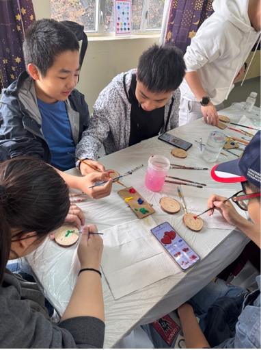 树板画创作的工作坊中,参加者先挑选自己喜欢的树板,透过绘画,将自己喜欢的图案和想法画在树板上,每个人都可以自由发挥自己的创意。随着颜料的层次变化,画面逐渐变得生动。有的用手指或画笔造出不同质感,还有的选择混合色彩,形成独特的渐变效果。在创作的过程中,大家互相交流,分享灵感与技巧,工作坊充满了欢声笑语。这两个工作坊不仅让参加者充分发挥创意,还提供了一个放松心灵的空间,让大家在这安静而美好的氛围中,与自然和艺术建立深刻的联系。