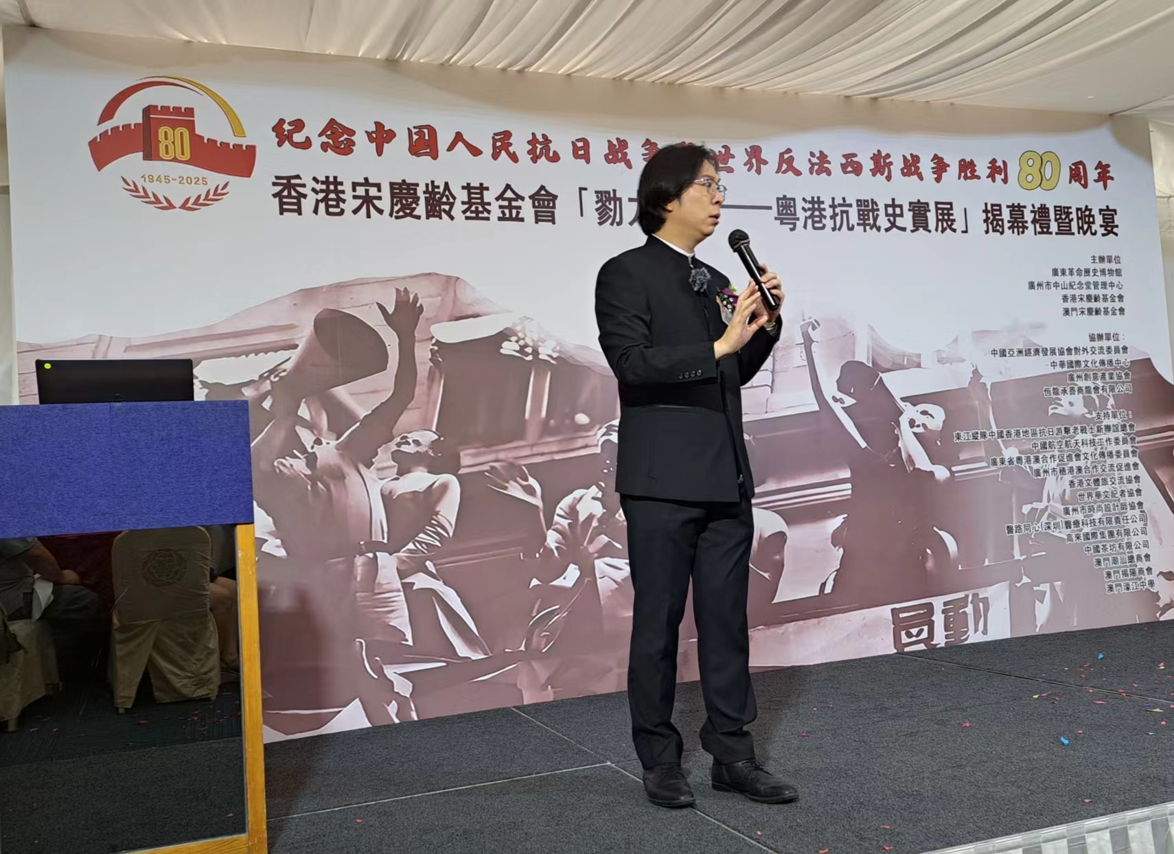 粵港抗戰史實展”港澳區巡展九龍佐敦區啟動禮暨晚宴上,香港教師會榮譽主席、香港校董學會創會